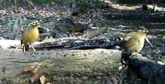 左:ガビチョウ 声が澄んで大きいので中国から連れて来られ、飼われていたのが籠抜けして日本で繁殖した外来生物。
