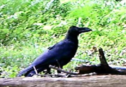 右:ハシブトガラス わがもの顔で水場を占領するギャング。くちばしが太いのでハシブト。