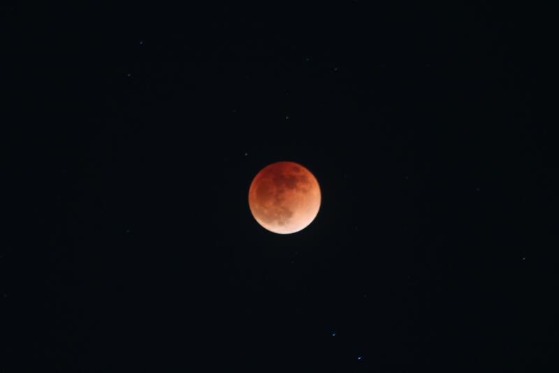 1月31日。今月2回目の満月「ブルームーン」が皆既月食で赤銅色の月になりました。