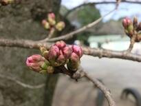 学校のソメイヨシノもピンクの花びらが見えてきました。