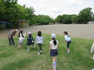 広い校庭でスキップするなど子どもたちは大喜びでした。