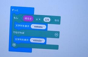 1時間目はアイデアを考えてほしいことを伝え、イメージをつけるためにマイクロビットで簡単なプログラムを作りました。