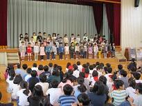 1年生が「よろしくおねがいします。」と、2曲の歌を歌いました。