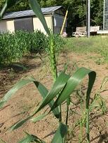 4月27日、6年生が5年生の秋から育てている麦の穂に花が咲いていました。