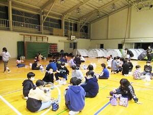 最終日、自分たちで使ったテントや毛布、ござ、寝袋を片付け、体育館のモップがけを行いました。