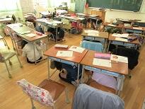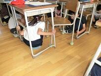 すぐに机の下にもぐり、ダンゴムシのポーズをとる訓練をシェイクアウト訓練といいます。