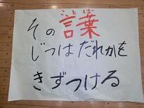 11月6日、児童朝会で5年生が、学級で考えた「いじめ標語」を発表して全校に呼びかけました。