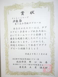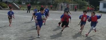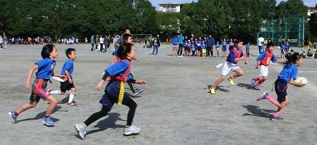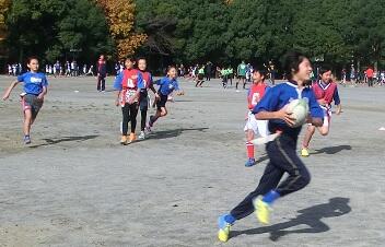 11月4日、タックルの代わりに腰につけたタグを取るタグラグビーの多摩カップ秋季大会が青陵中で行われました。