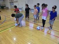 講義の後、鈴の入ったボールを転がしたり蹴ったりする体験をしました。