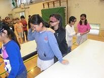 アイマスクをして様々な体験をする中で、目が不自由な方に対してどのように接していけばいいのかについて、体験を通して考えました。