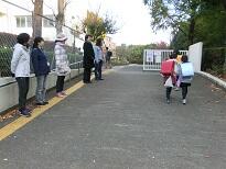 今月は3日間実施します。11月10日は、貝取北センター交差点と学校正門前に