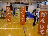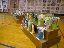 校舎メモリアルホールに展示してある放課後子ども教室で作った作品もご覧ください。