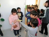 ・児童館でおやつを食べている子がいて、おやつをあげたりもらったりする子がいる。