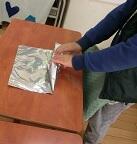 3年国語の教材「すがたをかえる大豆」で紹介されていた豆腐を実際に作ってみようと、3年生が挑戦しました。
