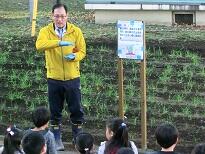 12月19日、5年生が秋に蒔いた麦が育つように麦踏みをしました。
