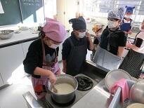 栄養教諭がつくり方を実演 小分けしておいしくいただきました