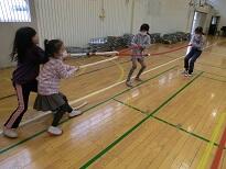 ESDルームでのゴムとび、女の子がたくさん遊んでいます。