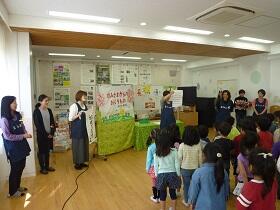 運営委員が、豊ヶ丘小学校の歴史やいいところ、頑張っていきたいことや学校林のことを話しました。