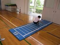 後半は、体験コーナーです。新体操の手具を使ったコーナー、マット運動のコーナー