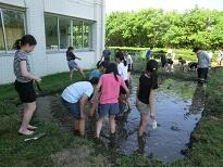 大粒の雨が落ちてきたので、場所を教室に移しました。