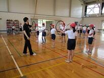 長縄跳びのコーナーを学級の代表者が体験しました。