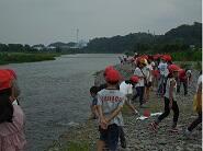 多摩第一小学校では、校内、多摩川、ヤギについて多摩第一小学校の児童に案内してもらいました。