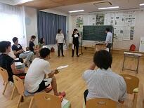 歌ったり、体を動かしたりしながら会話するアクティビティーを体験しました。