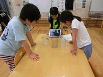 現物や資料、調べたデータや表、タブレットPCを準備して発表しています。