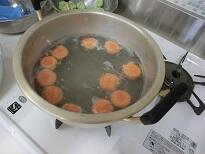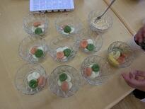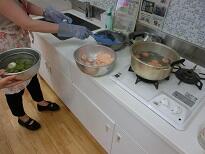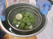 夏のヘルシーおやつ作りとして野菜ペースト入り白玉団子の実習をしました。