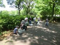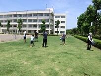 7月14日、地域清掃の後に、おやじの会の方々を中心に芝生へ肥料をまいてくださいました。