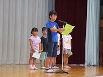 校長の話のあとに、各学年の代表児童が1学期がんばったことや2学期がんばりたいことを発表します。