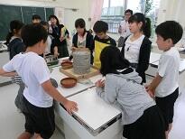 9月15日。6年生がその麦を石臼で粉に挽きました。
