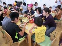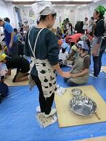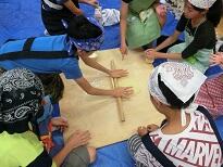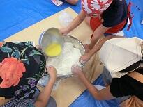 保護者とともに多摩の伝統食「多摩そば」づくりに挑みます。
