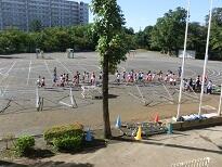 1~4年生はトラック半周、5・6年生はトラック1周を走ります。