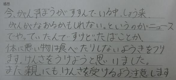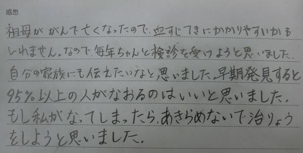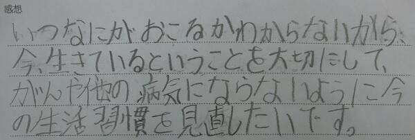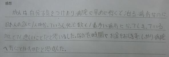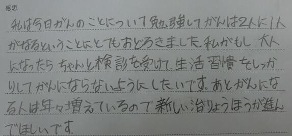 「がん」をむやみに怖がらずに対応していくことを学習しました。