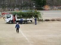 地域のお店からいただいた門松や剪定枝、学校の剪定枝を入れていきます。
