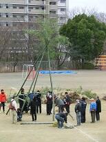まず、やぐらの柱を立てます。これが大変です。