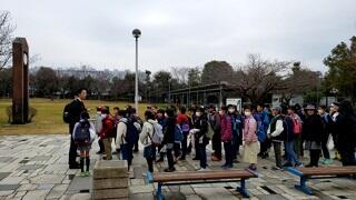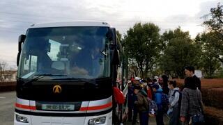 雲が多い空ですが、まずまずの天気の下、社会科見学に出発です。