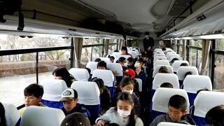 渋滞の間に、子どもたちは、見学に向けて学習課題の確認をして、学びの準備中です。