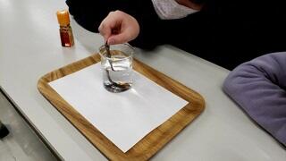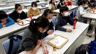 ラー油が水の表面に浮いてくるのを見て、改めて、エコな暮らしを考えることができた学習でした。