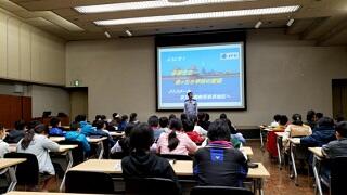 まず最初に学習室でスライドを見ながら川崎工場のことを勉強しています。
