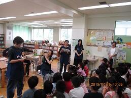 7月17日。1年生に向けて図書ボランティアのみなさんが