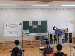 1年生は、「あさの したく ソング」を歌って、登校してからランドセルの片づけやお道具箱の整頓