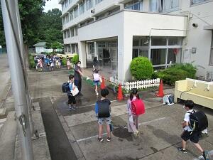 1~3年生と4~6年生は、10分間ですが、「時差登校」を行っています。