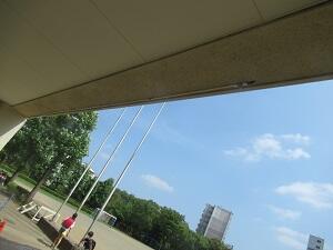 熱中症対策として、ミストの台数を増やすとともに、遮光ネットを昇降口玄関のところ