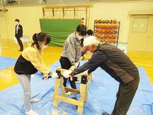 10/23(金)、6年生が、八ヶ岳少年自然の家の方を講師にお招きして、林業体験を行いました。
