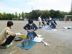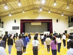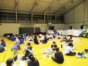 最終日、自分たちで使ったテントや毛布、ござ、寝袋を片付け、体育館のモップがけを行いました。