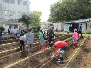 10/27(火)、4年生が青少年活動サポーターの皆様を講師にお招きし、麦まきを行いました。