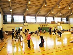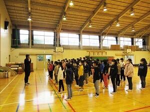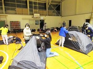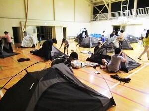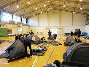 最終日、自分たちで使ったテントや毛布、ござ、寝袋を片付け、体育館のモップがけを行いました。