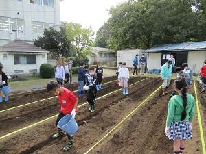 10/27(火)、4年生が青少年活動サポーターの皆様を講師にお招きし、麦まきを行いました。